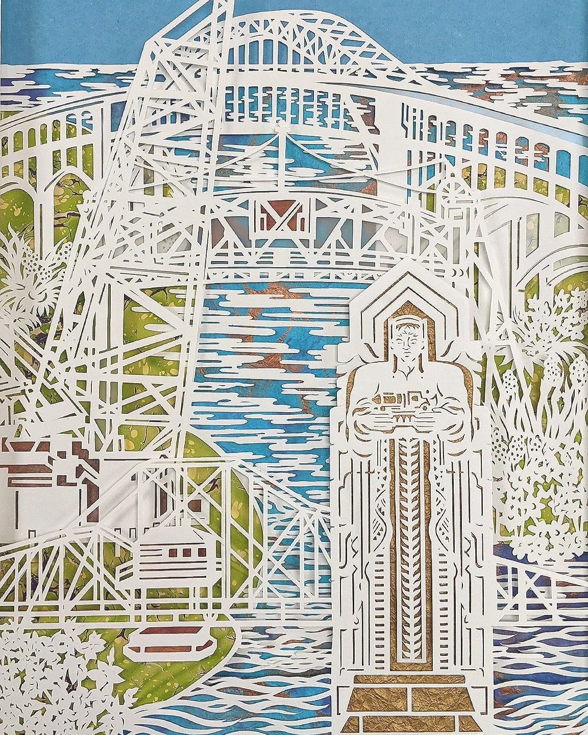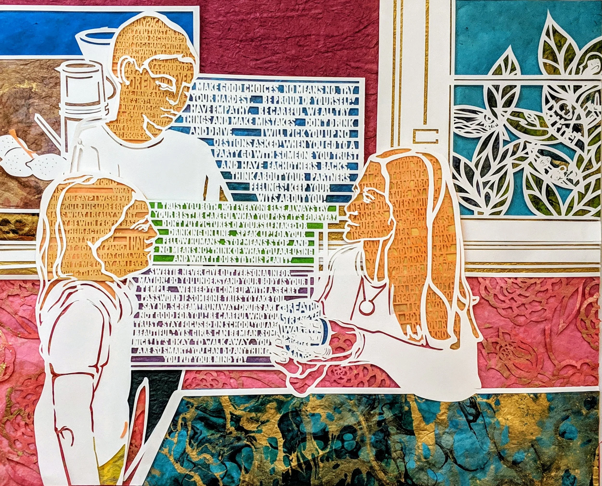 Nancy Schwartz Katz’s social commentary work explores human connection, collective memory, and moral responsibility through layered symbolism and meticulous craft. Drawing on history, text, and lived experience, her work addresses themes of belonging, empathy, and continuity without didacticism. Using papercutting she creates visually restrained yet emotionally resonant pieces that invite reflection, asking viewers to slow down and consider each piece's meaning, creating space for dialogue and reflection.